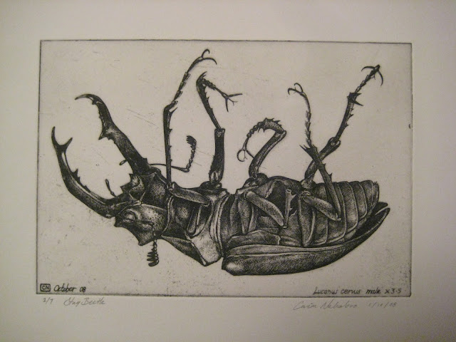 Decided to get some prints done of some previous work, pen and ink drawings of dead insects, Lucanus cervus male and female (European Stag Beetle) and Linnaemya vulpina, a Tachinid (parasitic) fly.